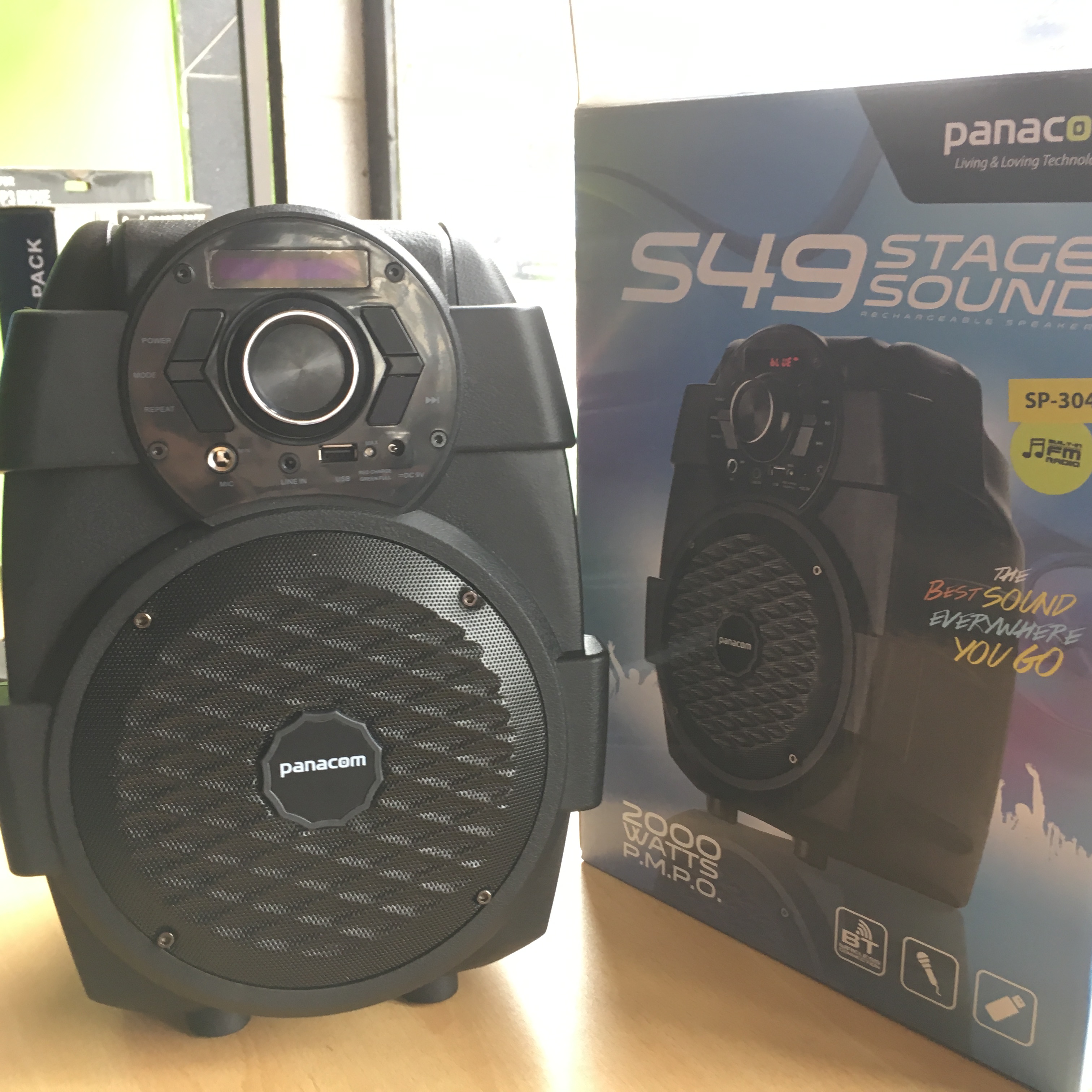 Parlante portátil Panacom Bluetooth . Se carga y tiene una autonomía de 5 horas de carga sin cables radio , puerto usb , puerto auxiliar panel digital